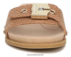 - STYLE: Womens flat sandals with metallic buckle detail, side nailhead accents, open toe, and 1/2 inch heel